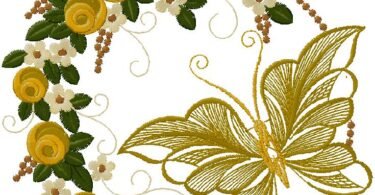 Butterfly with flowers Embroidery Design