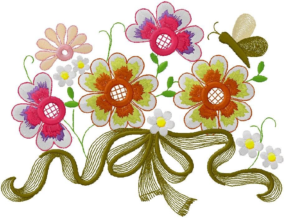 Whimsical Floral Bouquet with Butterfly Embroidery Design